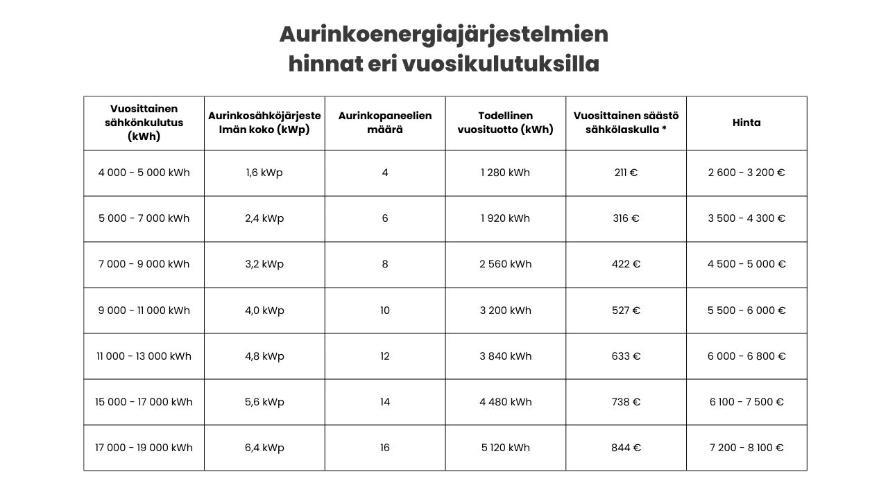 | Pieni talous | 3-5 kWh | 5-7 kWh |